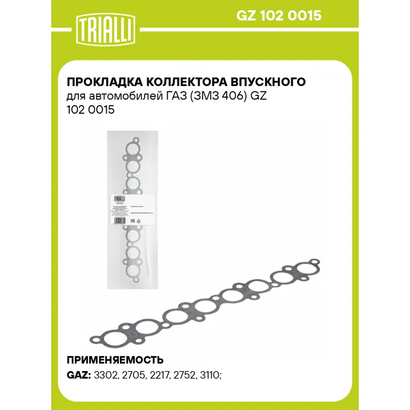 Прокладка коллектора впускного для автомобилей ГАЗ (ЗМЗ 406) Характеристики: Артикул: GZ 102 0015 OEM номера: 406.1008080 Гарантийный срок: 2 года/60 000 км. Количество на автомобиль: 1 Сопутствующие товары:: GZ 101 7024 Особенности конструкции:: впускного коллектора Материал: Безасбестовый Трансмиссия: М ABS: - Подходит для авто: ГАЗ 3302, 3302, 2705, 2705, 2217, 2217, 2752, 2752, 3110 Для проверки применяемости отправьте VIN автомобиля через вкладку "Есть вопросы о товаре?" Комплектация: Прокладка коллектора - 25 шт Гарантия: от 1 года.