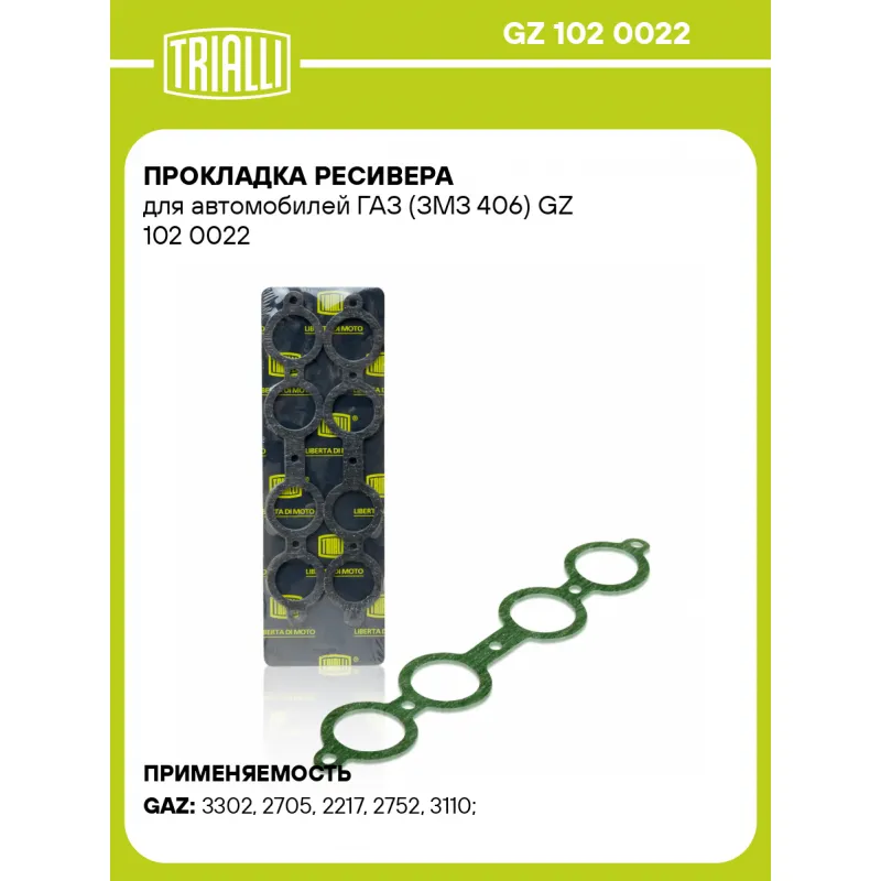 Прокладка ресивера для автомобилей ГАЗ (ЗМЗ 406) Характеристики: Артикул: GZ 102 0022 OEM номера: 4062.1008085, 4062-41-0080850-00 Гарантийный срок: 2 года/60 000 км. Количество на автомобиль: 1 Сопутствующие товары:: GZ 102 0015,GZ 102 0022 Материал: Безасбестовый Трансмиссия: М ABS: - Подходит для авто: ГАЗ 3302, 3302, 2705, 2705, 2217, 2217, 2752, 2752, 3110 Для проверки применяемости отправьте VIN автомобиля через вкладку "Есть вопросы о товаре?" Комплектация: Прокладка ресивера - 1 шт Гарантия: от 1 года.
