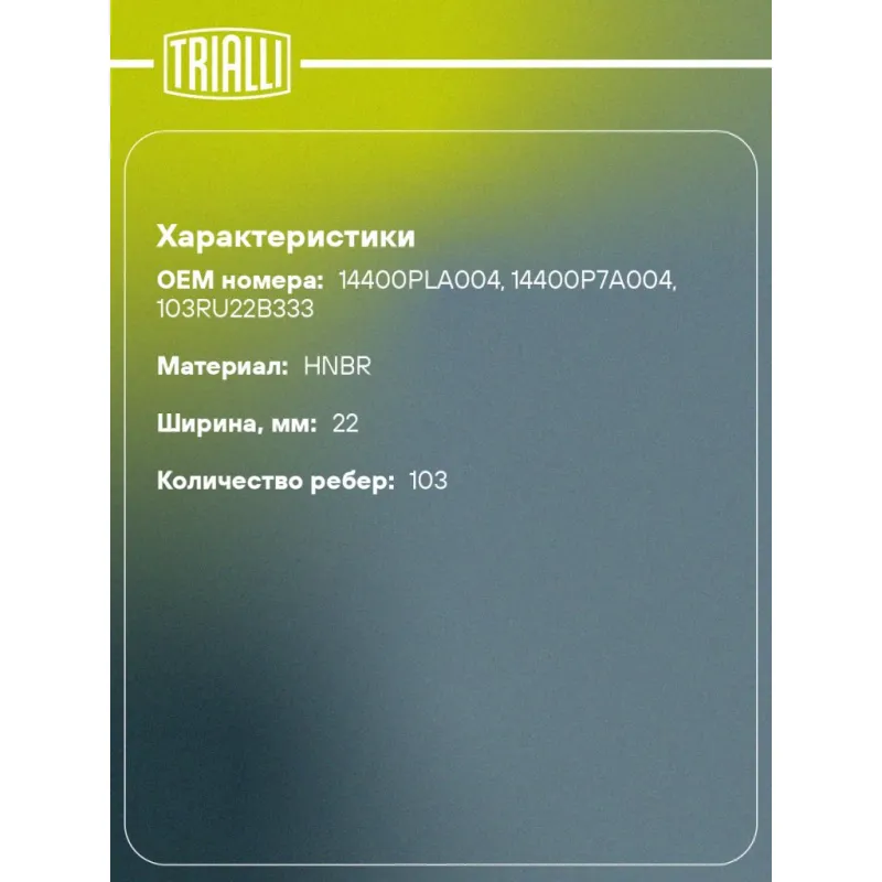 Ремень ГРМ для автомобилей Honda Civic VII (00-) 1.4i (103*22) (HNBR стекловолокно) GB 8994 TRIALLI