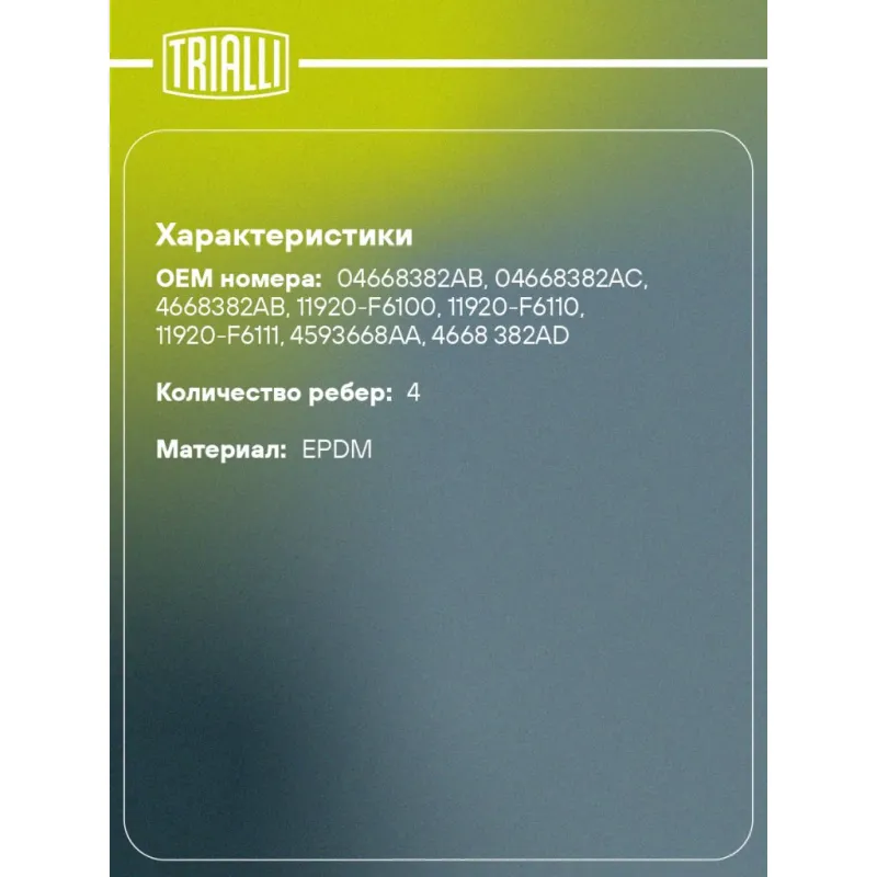 | TRIALLI 4PK1413 2 шт. | 1 день | 20.70 р. | |
