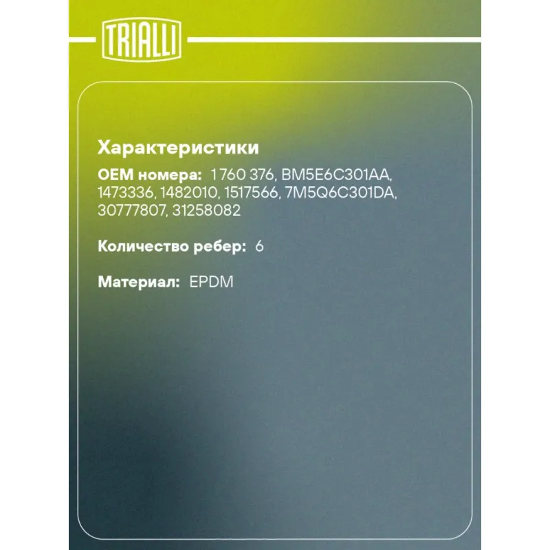 Ремень приводной для автомобилей Ford Focus II (05-) 1.8i/2.0i генератора (ELAST) 6PK1249E TRIALLI