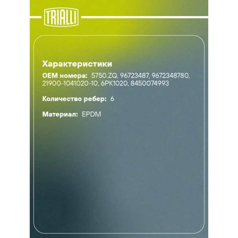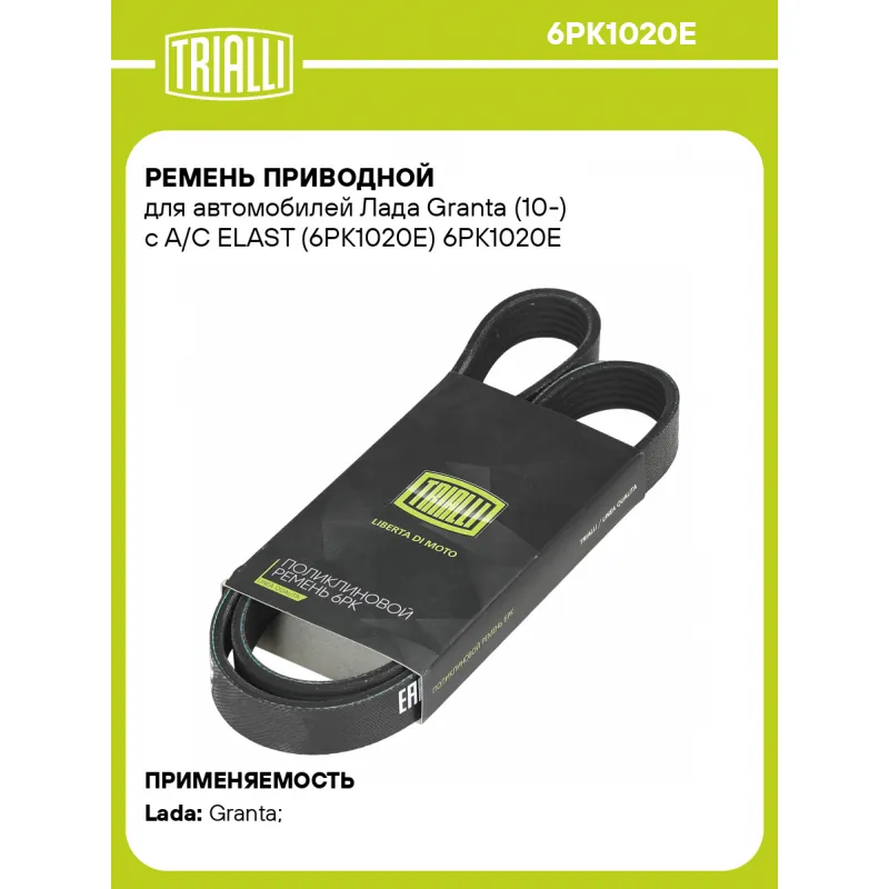 Ремень приводной для автомобилей Лада Granta (10-) с А/С ELAST (6PK1020E) 6PK1020E TRIALLI