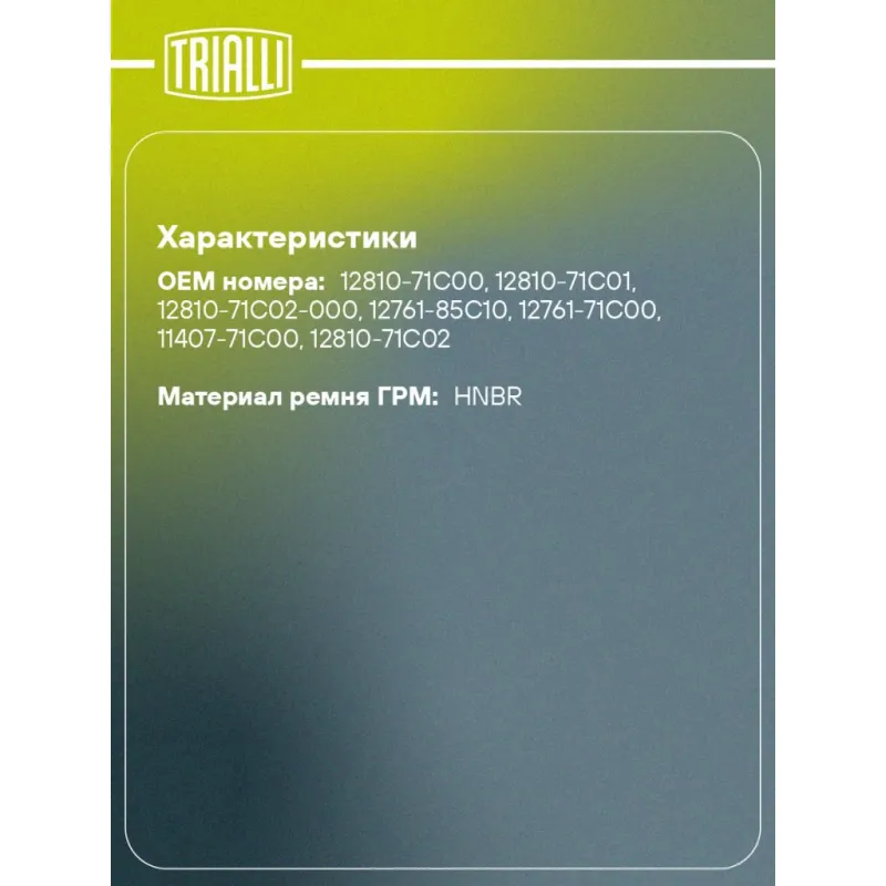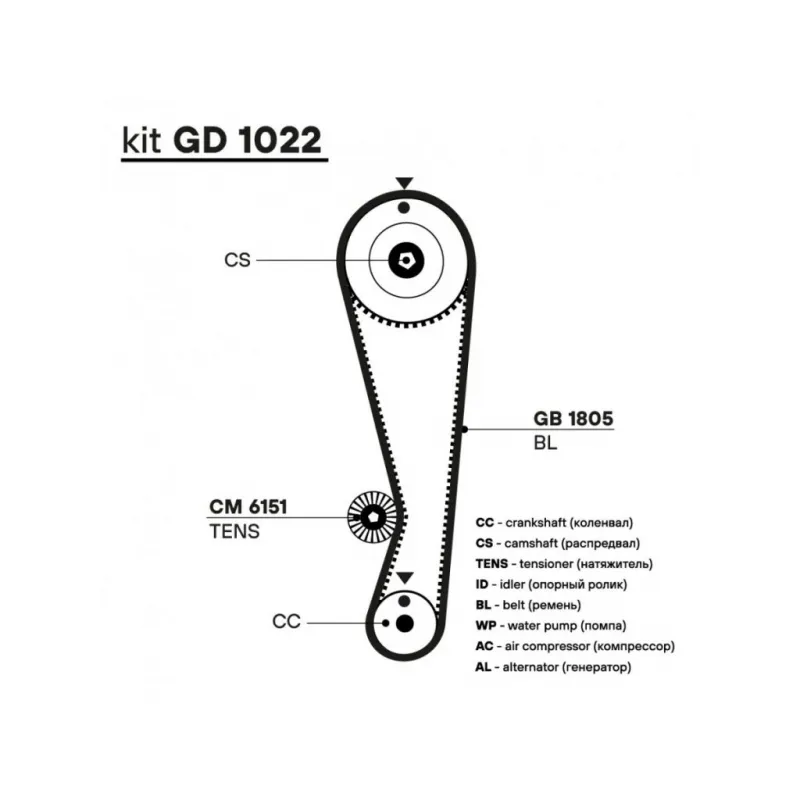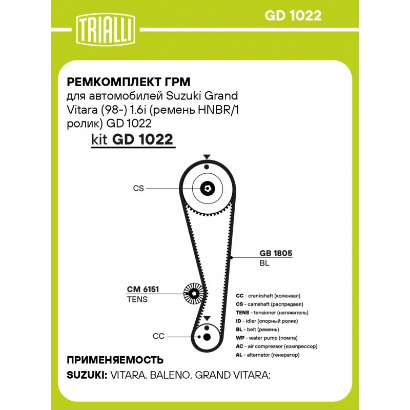 Ремкомплект ГРМ для автомобилей Suzuki Grand Vitara (98-) 1.6i (ремень HNBR/1 ролик) GD 1022 TRIALLI