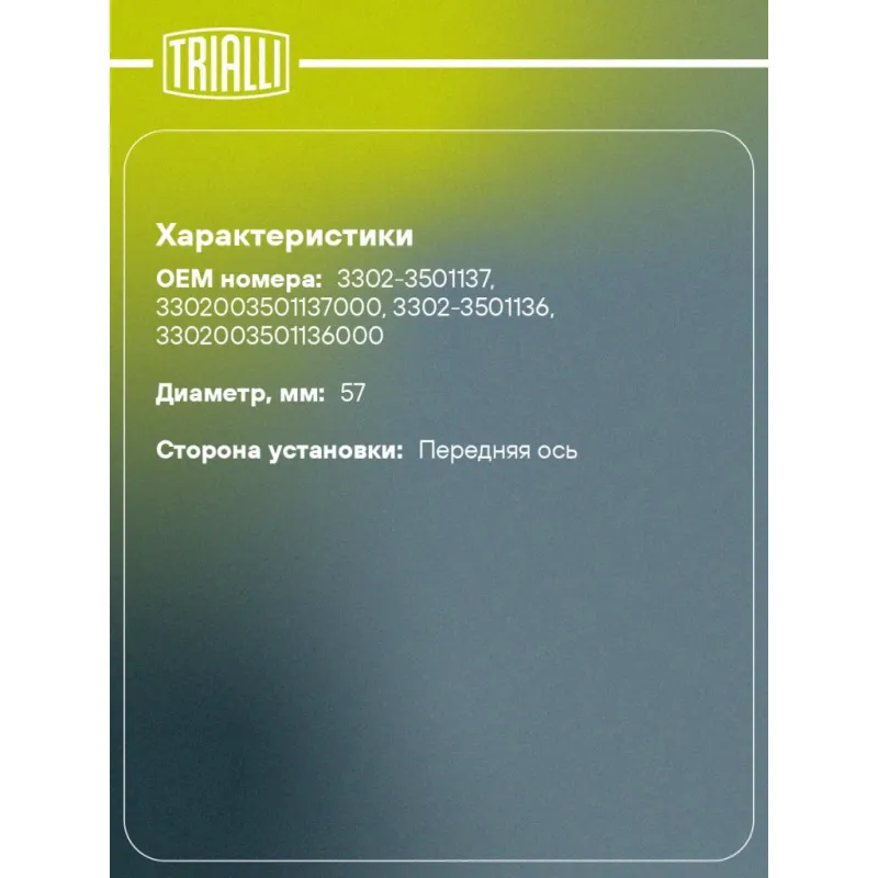 | Количество на автомобиль | 2 |