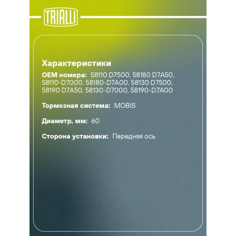 | Количество на автомобиль | 2 |