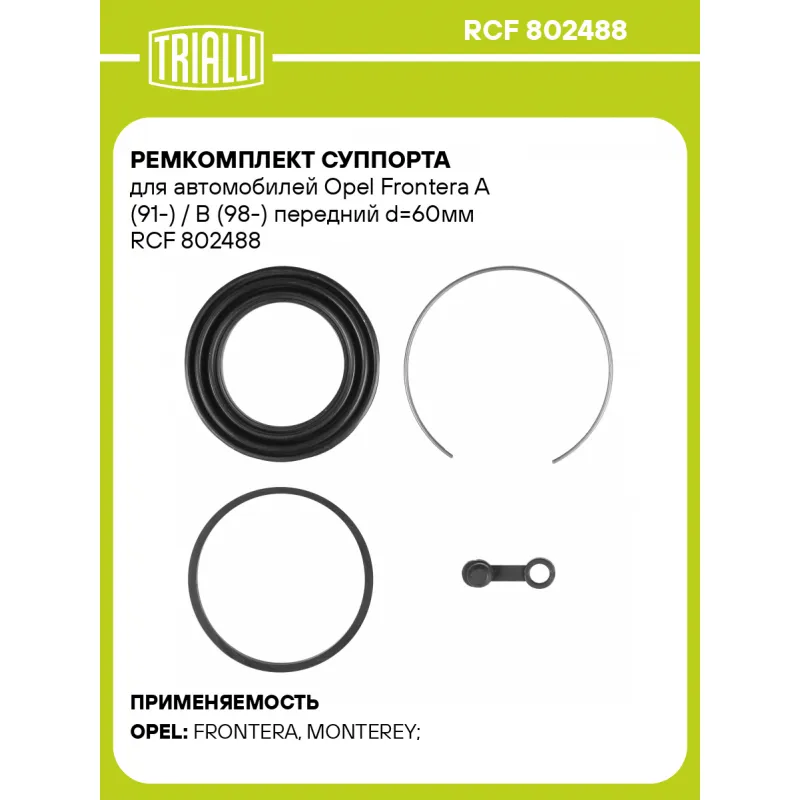 Ремкомплект суппорта для автомобилей Opel Frontera A (91-) / B (98-) передний d=60мм Характеристики: Артикул: RCF 802488 OEM номера: 5 42 116, 5 42 247, 97035249, 97144477, 5 42 107, 5 42 248, 97035248, 97144476 Сопутствующие товары:: CF 211301, CF 211302, RCF 211302, CF 211303 Тормозная система: AKEBONO Диаметр, мм: 60 Гарантий... Читать полностью →