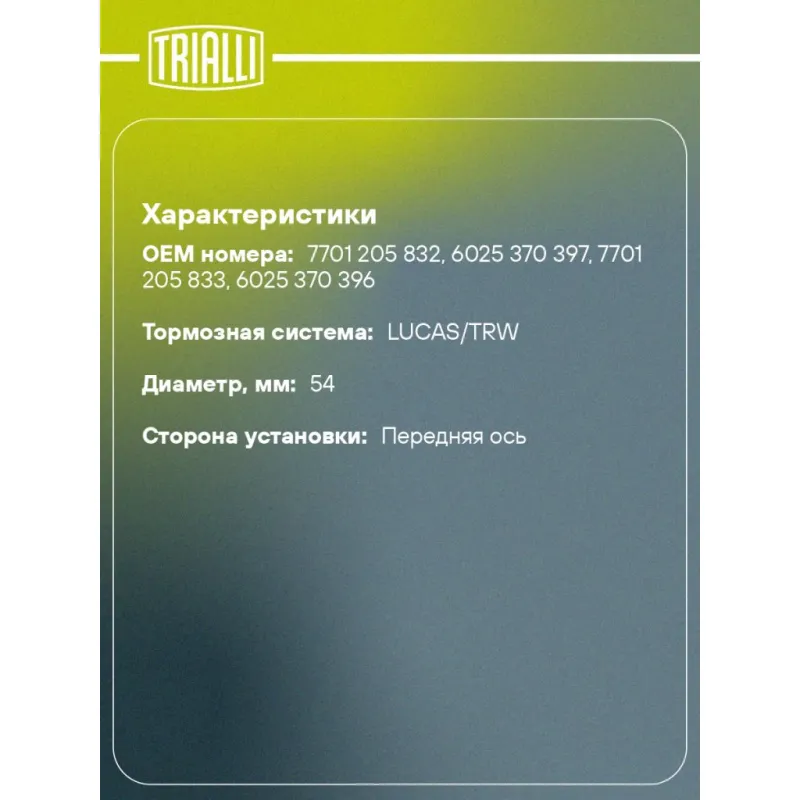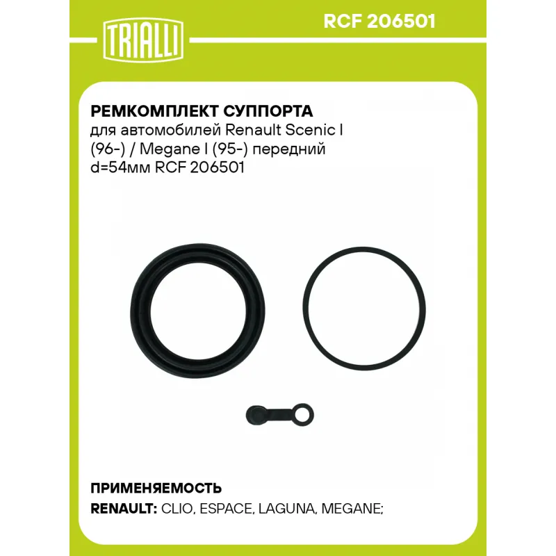 Ремкомплект суппорта для автомобилей Renault Scenic I (96-) / Megane I (95-) передний d=54мм RCF 206501 TRIALLI
