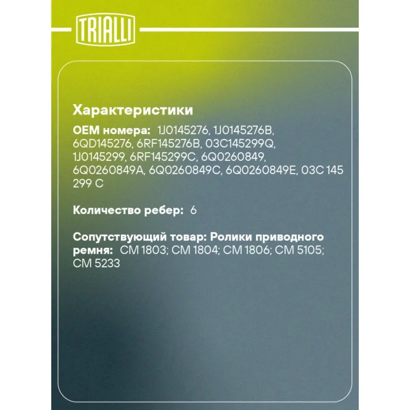 Сопутствующий товар: Ролики приводного ремня CM 1803; CM 1804; CM 1806; CM 5105; CM 5233