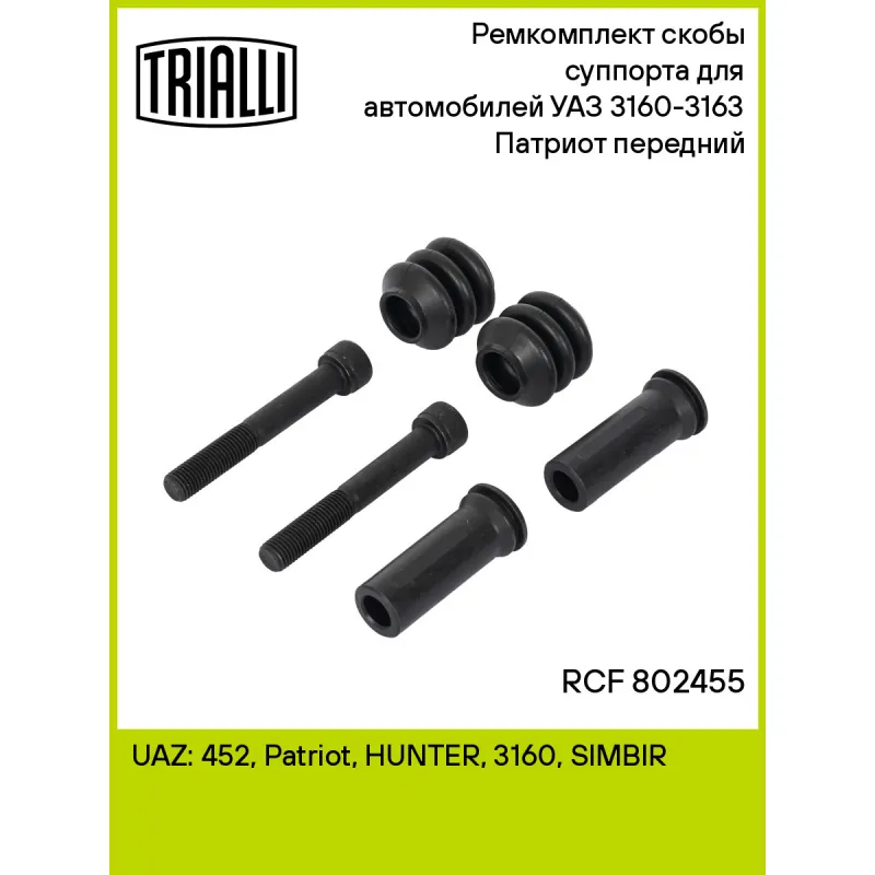 Ремкомплект скобы суппорта для автомобилей УАЗ 3160-3163 Патриот передний Характеристики: Артикул: RCF 802455 OEM номера: 3160-3501011, 3160-3501011-02, 31603501010, 31603501010-02 Сопутствующие товары:: CF 407, CF 408, CF 802488, RCF 200502 Диаметр, мм: 48 Гарантийный срок: 2 года / 60 000 км Сторона установки: Передняя ось Кол... Читать полностью →