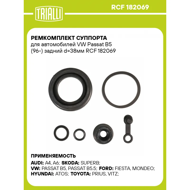 Ремкомплект суппорта для автомобилей VW Passat B5 (96-) задний d=38мм Характеристики: Артикул: RCF 182069 OEM номера: 8E0 615 423, 8E0 615 424 Тормозная система: TRW Диаметр, мм: 41 Сторона установки: Задняя ось Количество на автомобиль: 2 Сопутствующие товары:: CF 182069, CF 182070, RCF 182070 Товарная линейка: BLACK Гарантийны... Читать полностью →