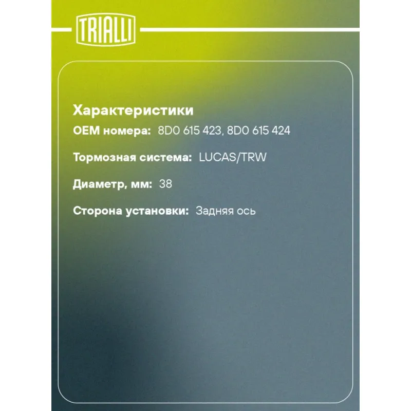 Ремкомплект суппорта для автомобилей Audi A4 (94-) задний d=38мм Характеристики: Артикул: RCF 052317 OEM номера: 8D0 615 423, 8D0 615 424 Сопутствующие товары:: CF 002235, CF 002236, CF 000131, RCF 052317P Тормозная система: LUCAS/TRW Диаметр, мм: 38 Гарантийный срок: 2 года / 60 000 км Сторона установки: Задняя ось Количество н... Читать полностью →