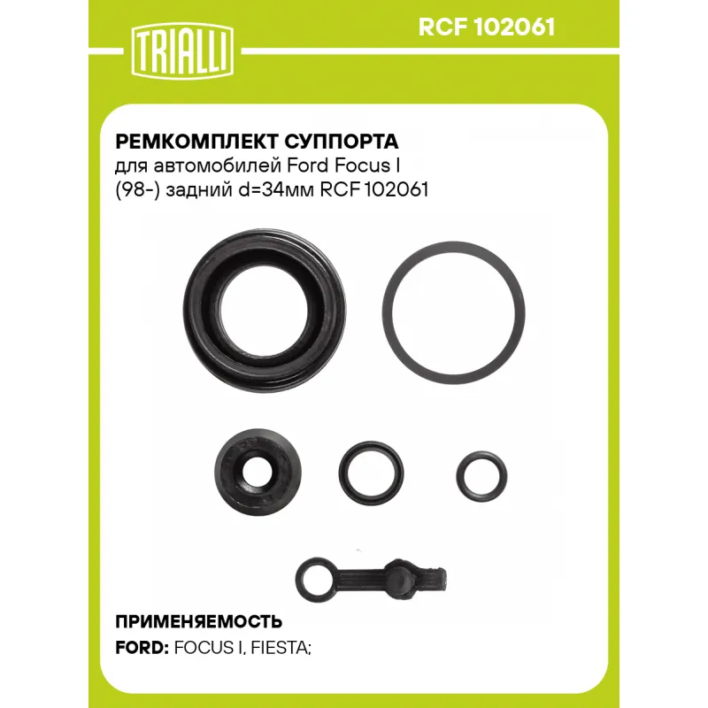 Ремкомплект суппорта для автомобилей Ford Focus I (98-) задний d=34мм Характеристики: Артикул: RCF 102061 OEM номера: 1075554, 1478419, 1075553, 1478337 Тормозная система: TRW Диаметр, мм: 34 Сторона установки: Задняя ось Количество на автомобиль: 2 Товарная линейка: BLACK Гарантийный срок: 2 года / 60 000 км Комплектация: Уп... Читать полностью →