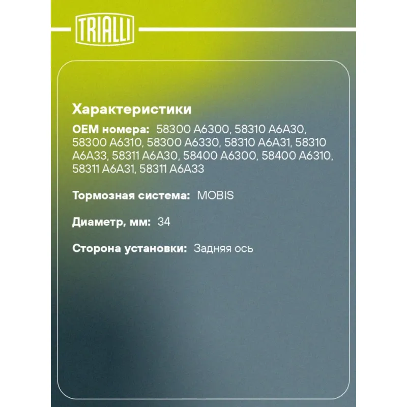 | Особенности конструкции: | Для автомобилей без электрического стояночного тормоза |
