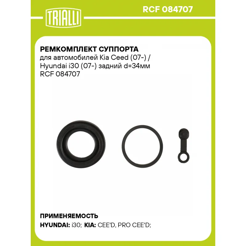 Ремкомплект суппорта для автомобилей Kia Ceed (07-) / Hyundai i30 (07-) задний d=34мм RCF 084707 TRIALLI