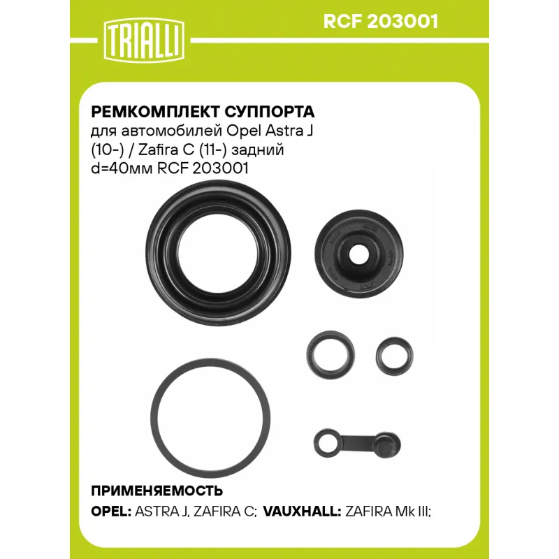 Ремкомплект суппорта для автомобилей Opel Astra J (10-) / Zafira C (11-) задний d=40мм Характеристики: Артикул: RCF 203001 OEM номера: 5 42 377, 13300886, 5 42 378, 13300885 Сопутствующие товары:: CF 203001, CF 203002, RCF 203002, CF 203003 Тормозная система: ATE Диаметр, мм: 40 Гарантийный срок: 2 года / 60 000 км Сторона устан... Читать полностью →