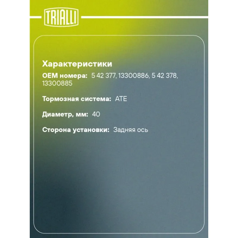 | Сторона установки | Задняя ось |