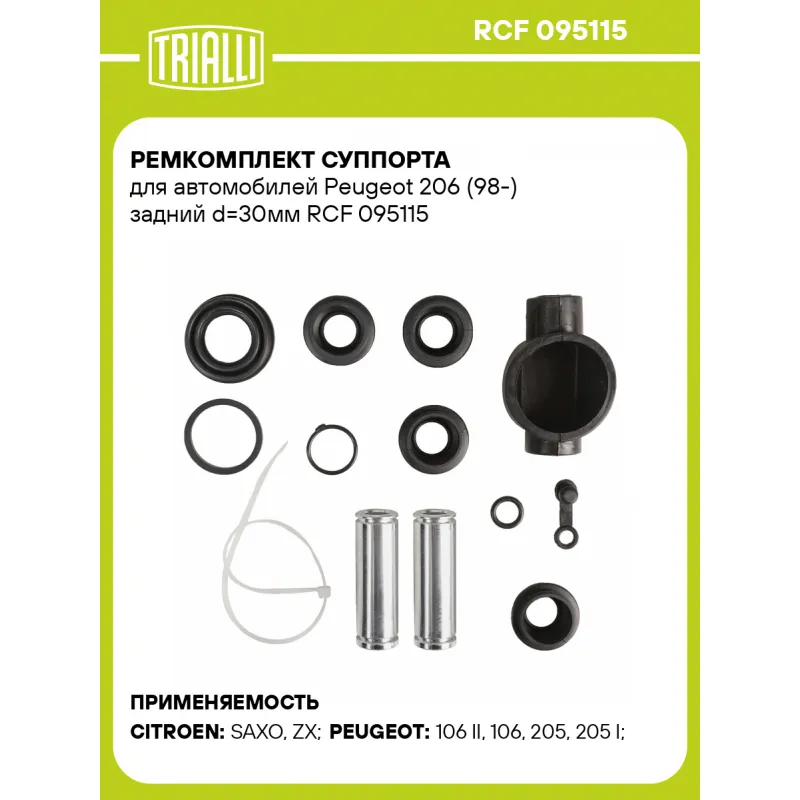 Ремкомплект суппорта для автомобилей Peugeot 206 (98-) задний d=30мм Характеристики: Артикул: RCF 095115 OEM номера: 440161, 9404401618, 440162 Тормозная система: BOSCH/BENDIX Диаметр, мм: 30 Сторона установки: Задняя ось Количество на автомобиль: 2 Сопутствующие товары:: CF 095115, CF 095116, RCF 095116 Товарная линейка: BLACK ... Читать полностью →