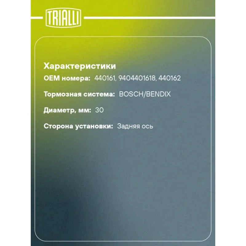 | Сторона установки | Задняя ось |
