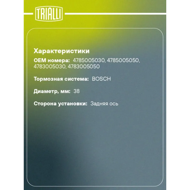 | Сторона установки | Задняя ось |
