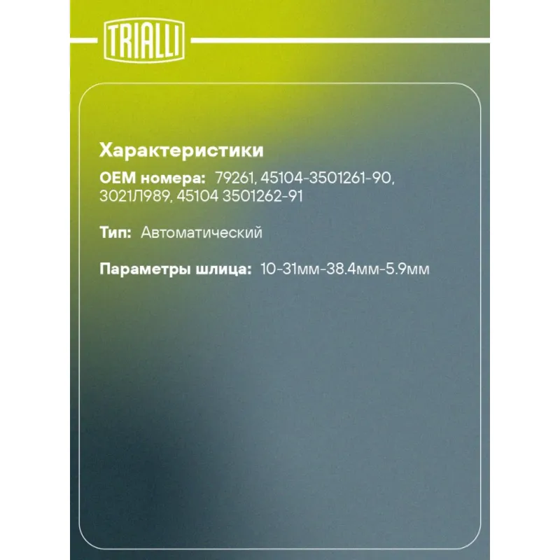 | Параметры шлица | 10-31мм-38.4мм-5.9мм |