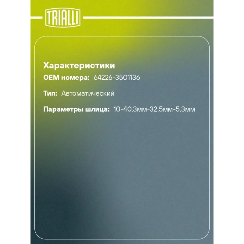 | Параметры шлица | 10-40.3мм-32.5мм-5.3мм |