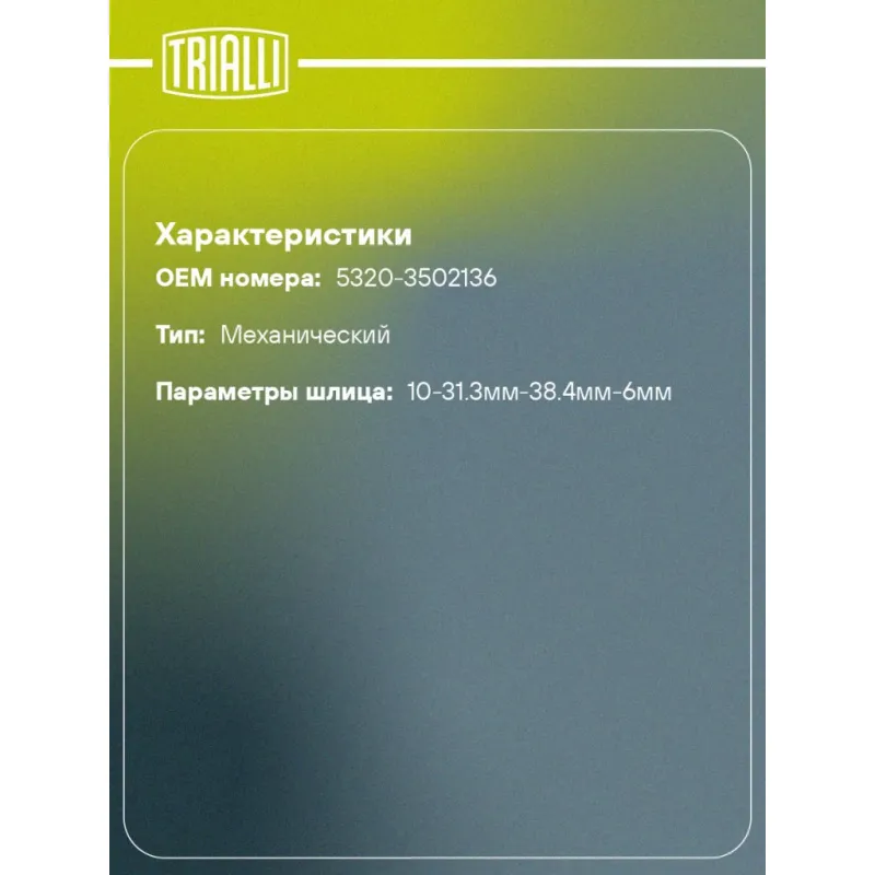 | Параметры шлица | 10-31.3мм-38.4мм-6мм |