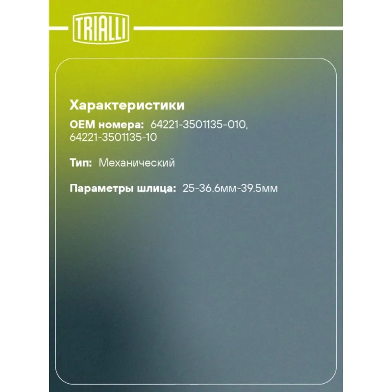 | Параметры шлица | 25-36.6мм-39.5мм |