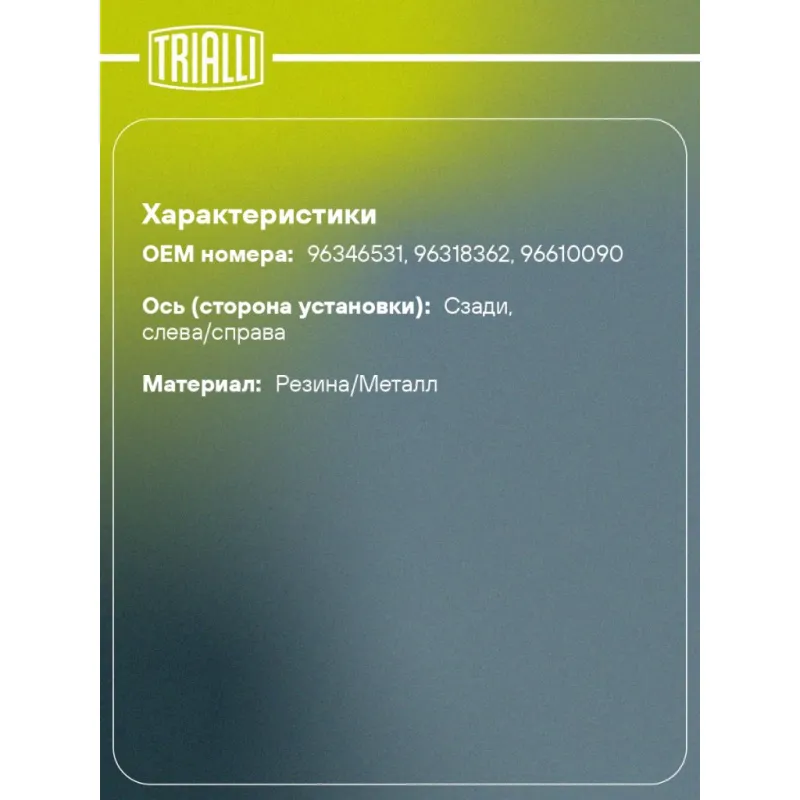 Сайлентблок рычага задний подвески к балке для автомобиля Daewoo Matiz (98-) SB 0544 TRIALLI