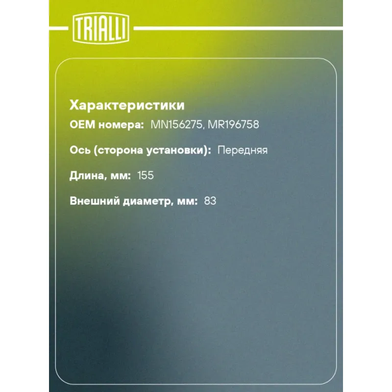 | Ось (сторона установки) | передняя |