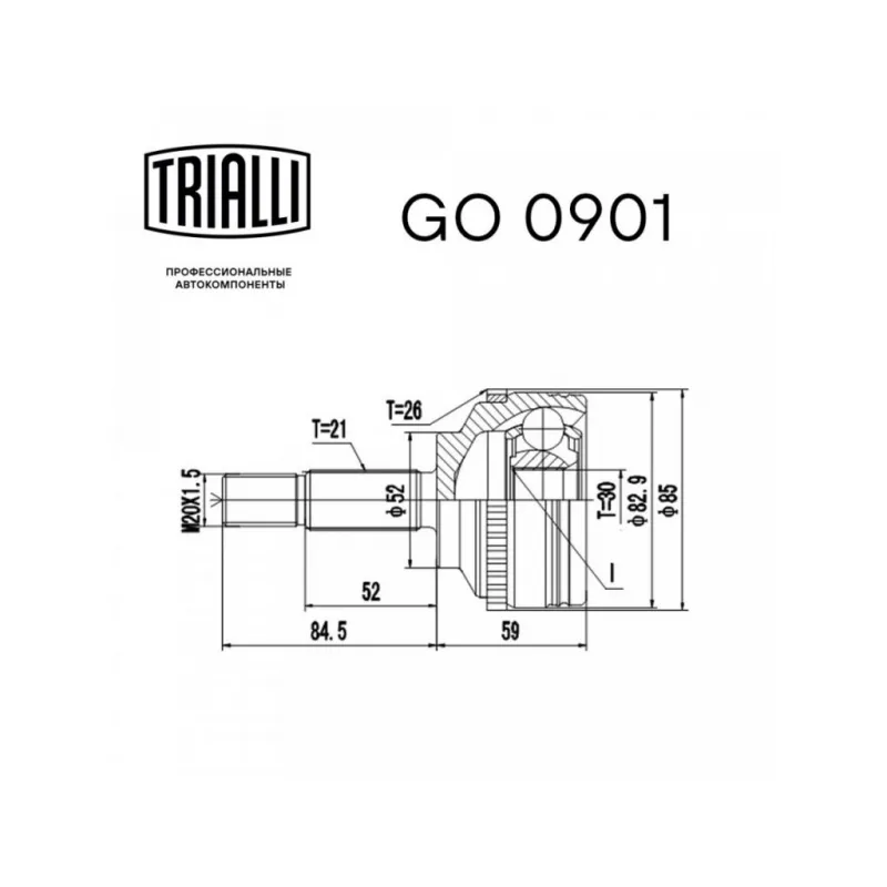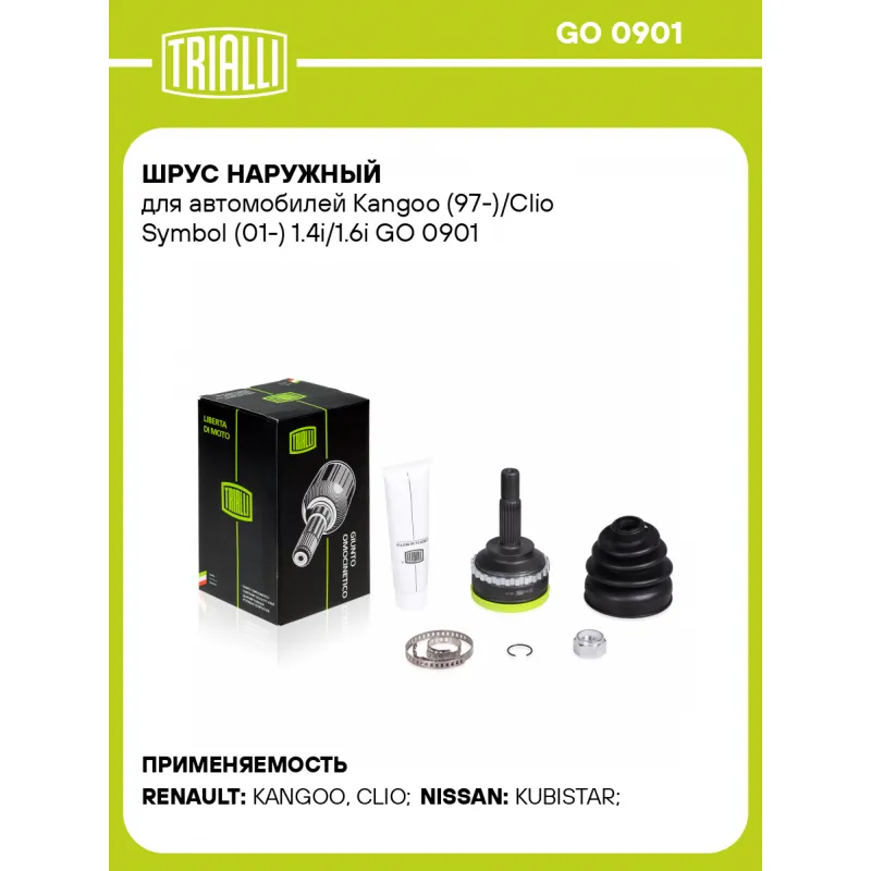 ШРУС наружный для автомобилей Kangoo (97-)/Clio Symbol (01-) 1.4i/1.6i GO 0901 TRIALLI