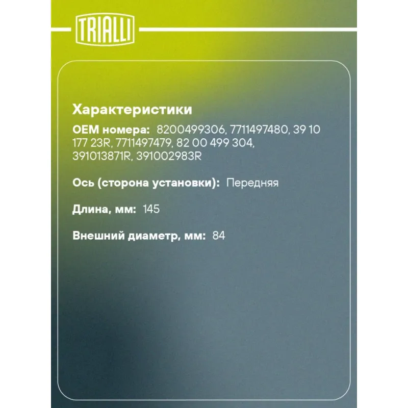 | Количество на автомобиль | 2 |