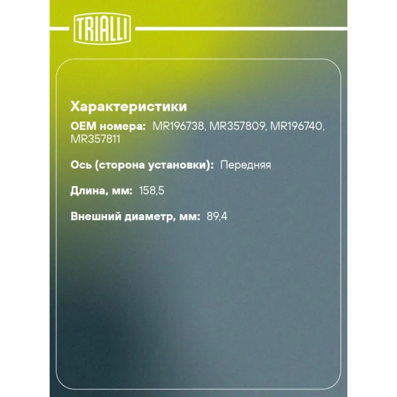 | Ось (сторона установки) | передняя |