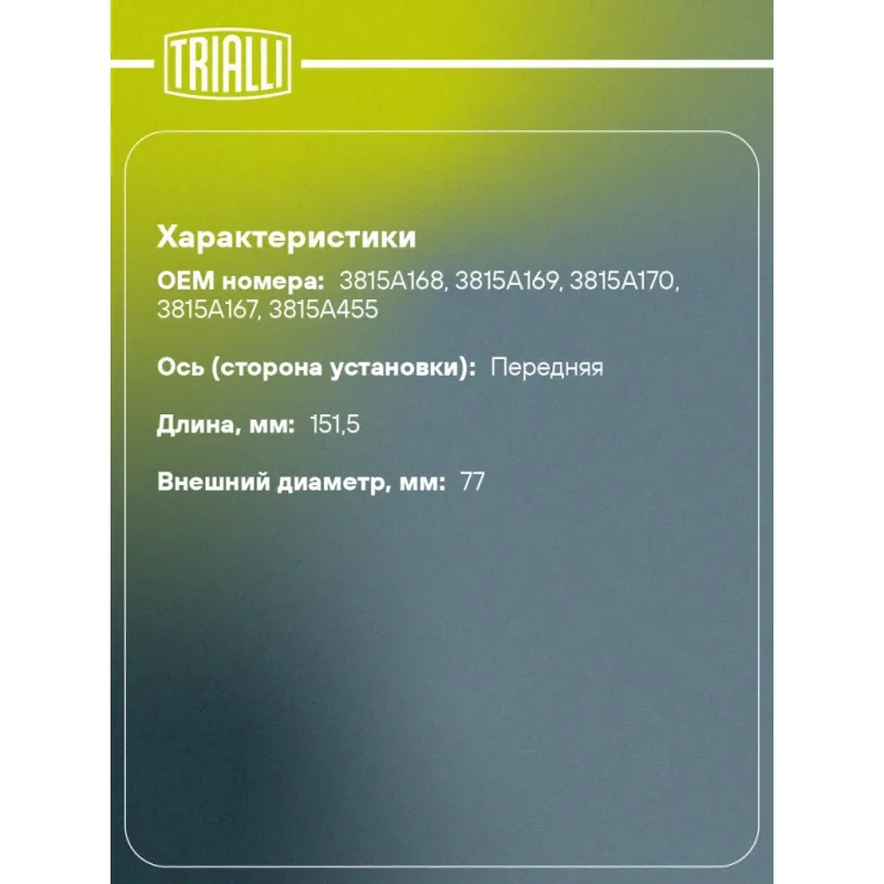 | Ось (сторона установки) | передняя |