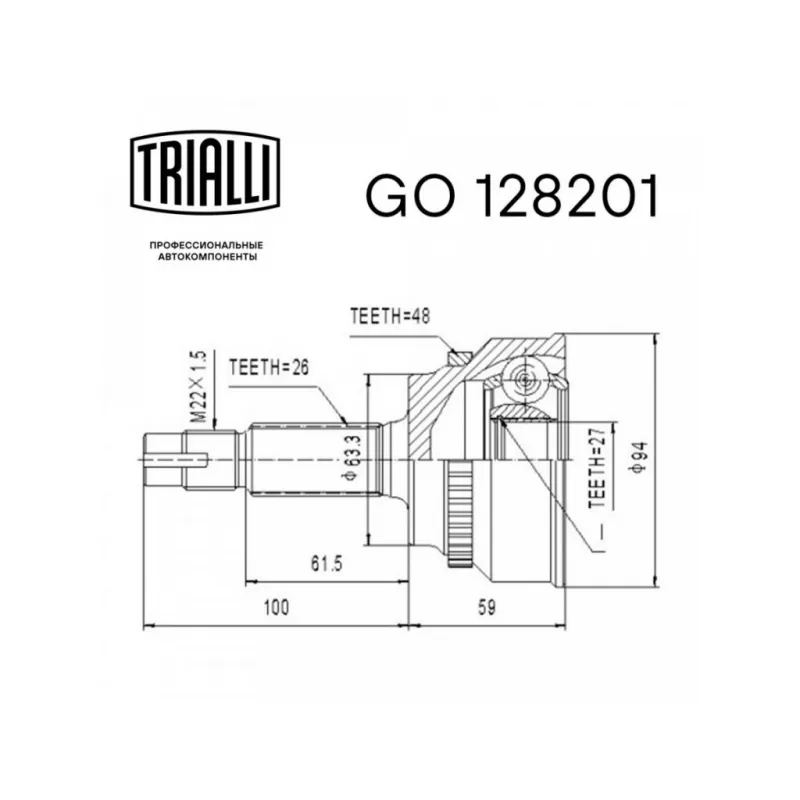 ШРУС наружный для автомобилей Toyota Camry (01-) 2.0i/2.4i Характеристики: Артикул: GO 128201 OEM номера: 43410-28030, 43410-28040, 43410-28080, 43410-28090, 43410-28130, 43410-28140, 43410-28150, 43410-33240, 43410-33260, 43410-48050, 43410-48061, 43410-48071, 43420-28030, 43420-28040, 43420-28080, 43420-44050, 43420-44120, 43420-48061, 43420-48091, 43420-48100, 43420-58030, 43420-68010, 43460-39145, 43460-39146, 43470-29625, 43470-29626, 43470-29635, 43470-29636, 43470-29885, 43470-29895, 43470-80057, 43470-80062, 43470-80064, 43470-80167, 43470-80171, 43470-80178, 43470-80349, 43470-80357, 43470-80358 Внешний диаметр, мм: 94 Тип КПП: AT Гарантийный срок: 2 года/60 000 км Материал пыльника: CR Количество на автомобиль: 2 Ось (сторона установки): передняя Длина, мм: 159 Внешнее зубчатое соединение со стороны колеса (внеш.): 26 Внутреннее зубчатое соединение со стороны колеса (внеш.): 27 Наличие/Отсутвие ABS: есть Количество зубьев ABS: 48 Размер резьбы: М22х1,5 Сопутствующий товар: Ремонтные комплекты ШРУСов: FG 2508, FG 1901 Сопутствующий товар: ШРУСы: GO 1993, GO 1909, GO 1910 Товарная линейка: BLACK Трансмиссия: M/A Подходит для авто: Toyota Camry (01-) Для проверки применяемости отправьте VIN автомобиля через вкладку "Есть вопросы о товаре?" Комплектация: ШРУС - 1 шт Чехол ШРУСа - 1 шт Хомут - 2 шт Стопорное кольцо - 1 шт Гайка - 1 шт Смазка - 1 шт Гарантия: от 1 года.