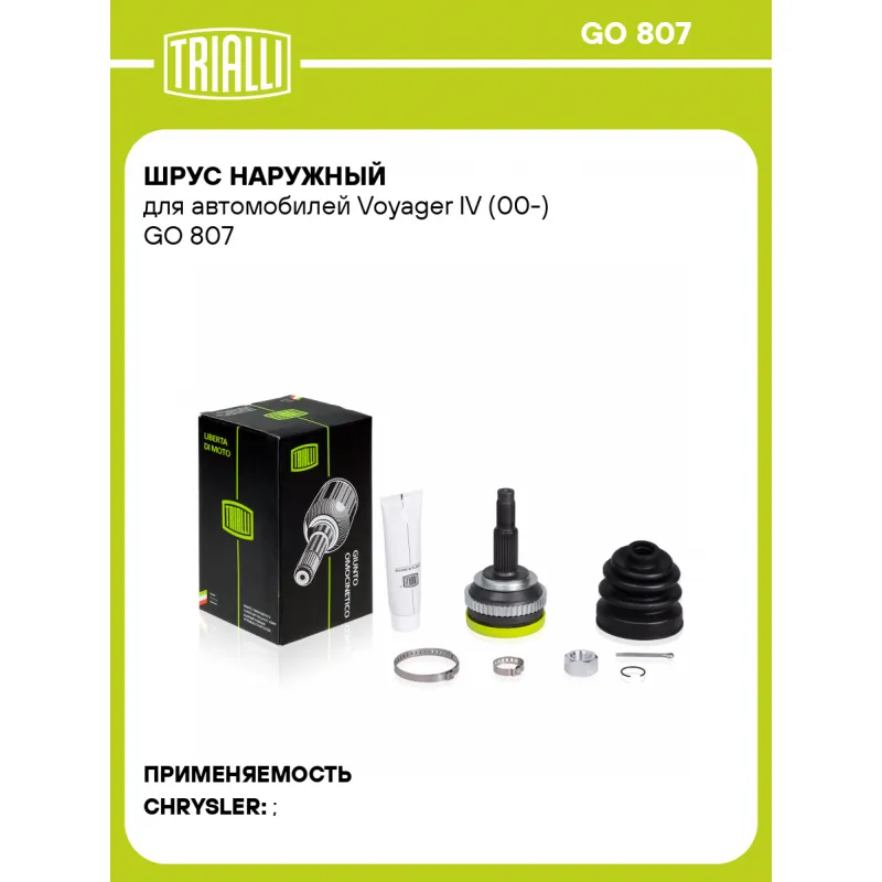 ШРУС наружный для автомобилей Voyager IV (00-) GO 807 TRIALLI