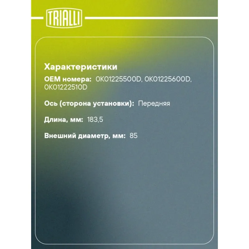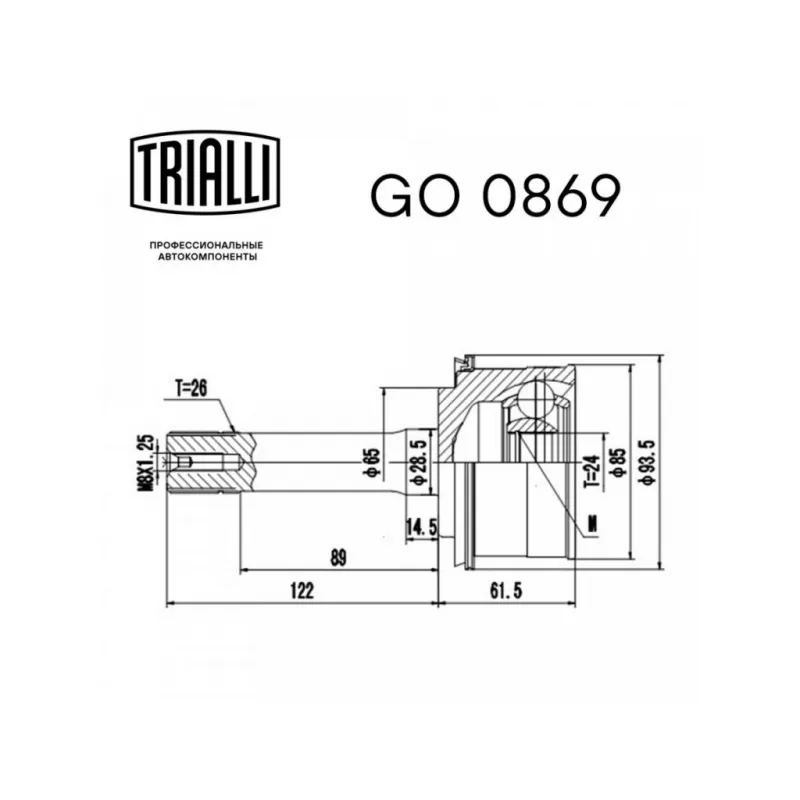 ШРУС наружный передний для автомобилей Kia Sportage (93-) GO 0869 TRIALLI