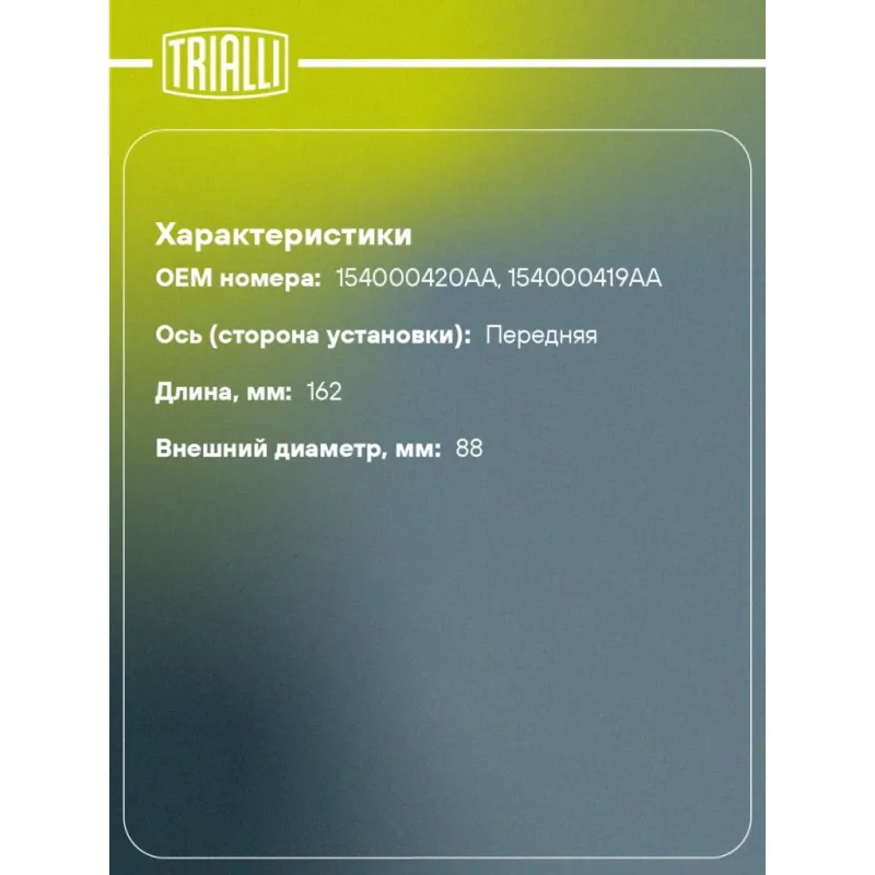 | Ось (сторона установки) | передняя |