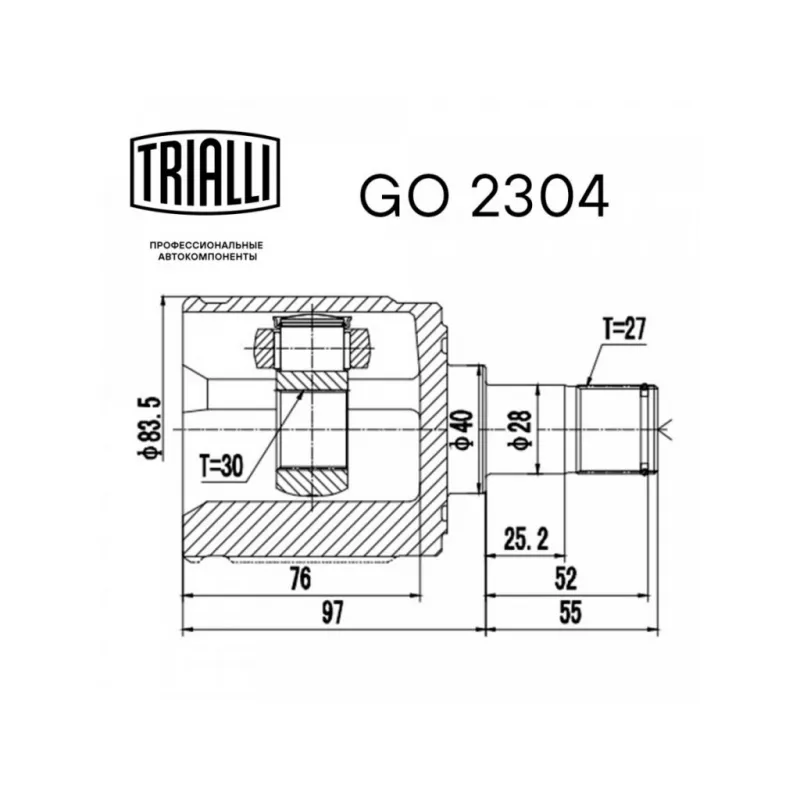 | Внешнее зубчатое соединение со стороны КПП (внутр.) | 27 |