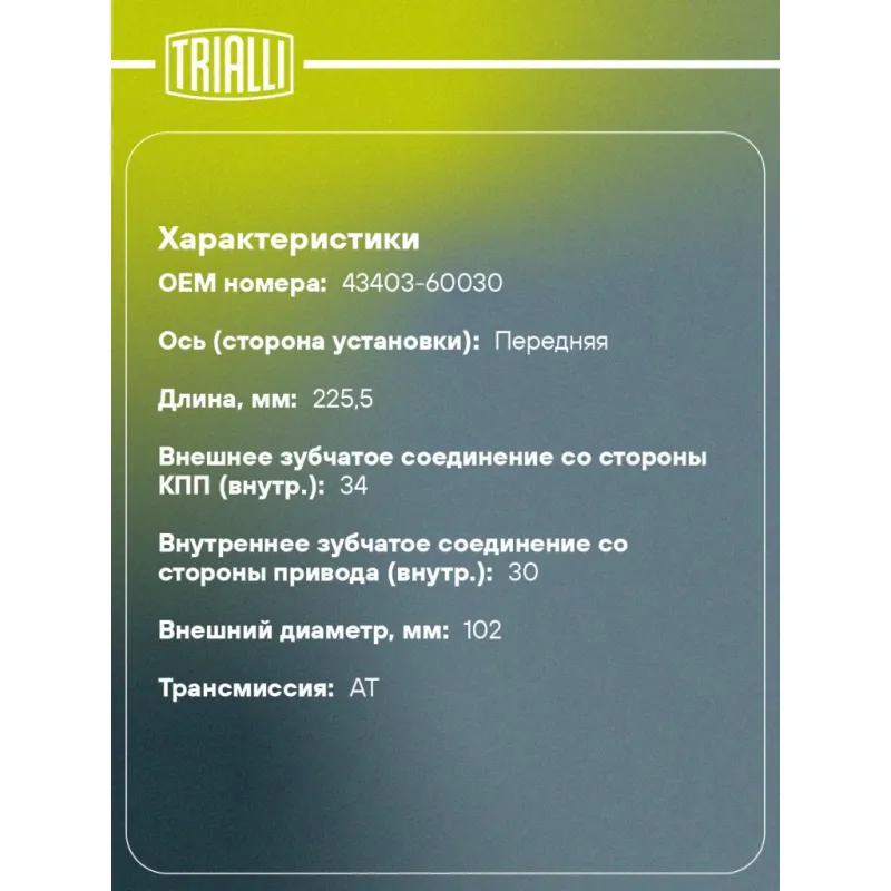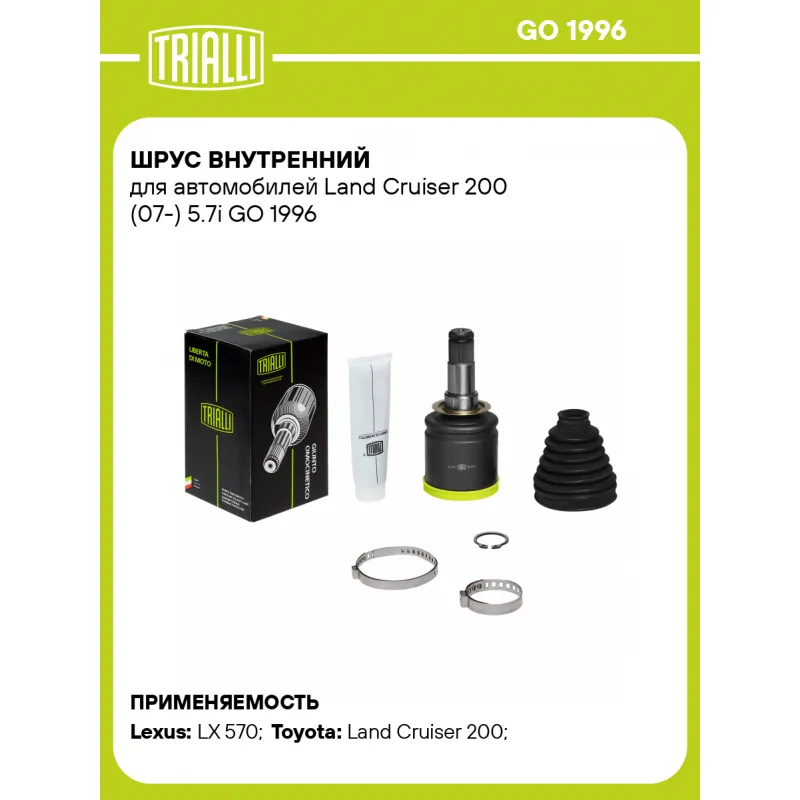 ШРУС внутренний для автомобилей Land Cruiser 200 (07-) 5.7i GO 1996 TRIALLI