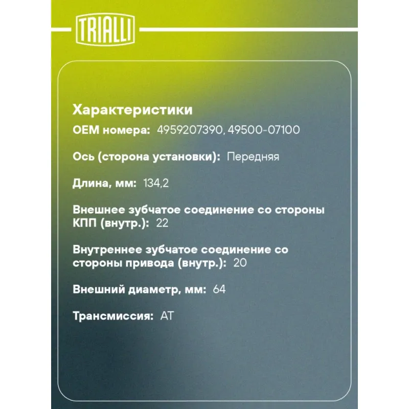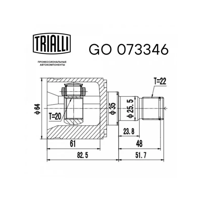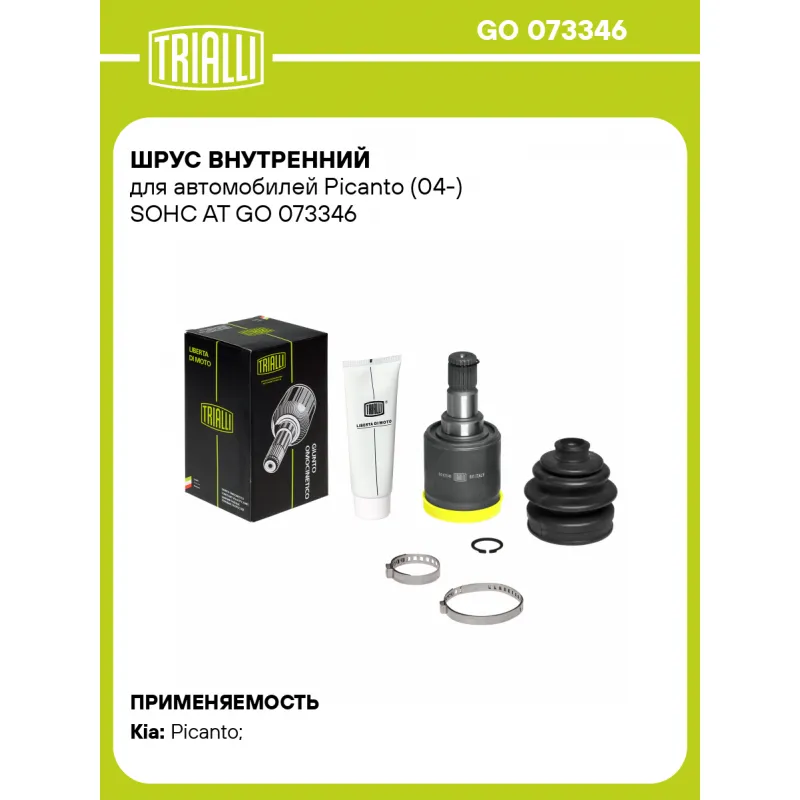 ШРУС внутренний для автомобилей Picanto (04-) SOHC AT GO 073346 TRIALLI