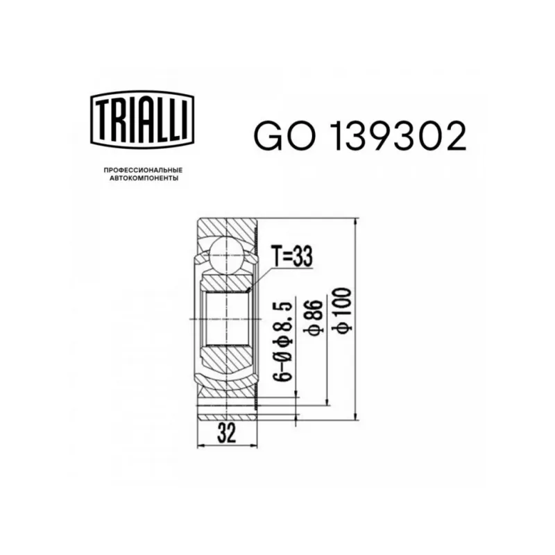 | Внутреннее зубчатое соединение со стороны привода (внутр.) | 33 |