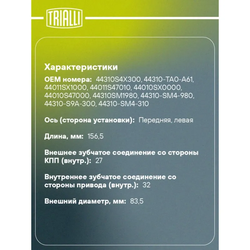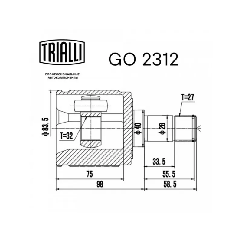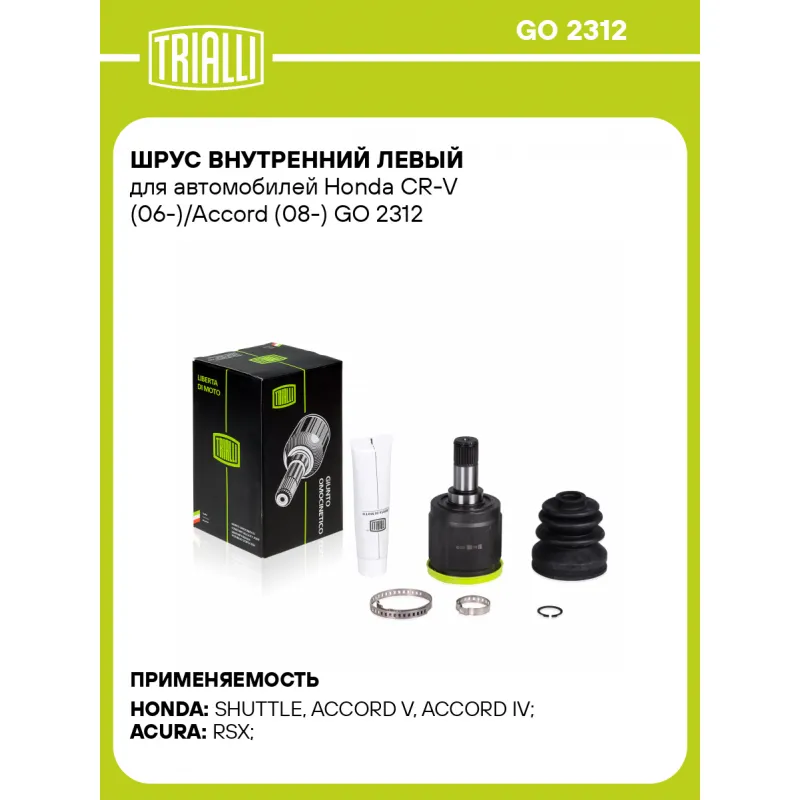 ШРУС внутренний левый для автомобилей Honda CR-V (06-)/Accord (08-) GO 2312 TRIALLI