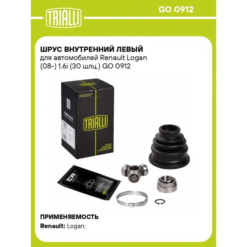 ШРУС внутренний левый для автомобилей Renault Logan (08-) 1.6i (30 шлц.) Характеристики: Артикул: GO 0912 OEM номера: 39 10 177 23R, 7711497479, 82 00 499 304, 39 24 144 59R, 60 01 547 765, 60 01 548 664, 7701473830 Тип КПП: MT Материал пыльника: CR Количество на автомобиль: 1 Сопутствующие товары:: AR 0902, GO 0911 Ось (сторона установки): передняя Гарантийный срок: 2 года/60 000 км Внутреннее зубчатое соединение со стороны привода (внутр.): 30 Наличие/Отсутвие ABS: отсут Особенности конструкции:: Диаметр ролика 29,95мм Сопутствующий товар: Приводы: AR 0901; AR 095151; AR 095152 Сопутствующий товар: Ремонтные комплекты ШРУСов: FG 0905; FG 0909; FG 0910; FG 0911; FG 0915; FG 2305; RG 0930; RG 0931 Сопутствующий товар: ШРУСы: GO 0908; GO 0909; GO 0910; GO 0911; GO 0913 Товарная линейка: BLACK Подходит для авто: Renault Logan (08-) Для проверки применяемости отправьте VIN автомобиля через вкладку "Есть вопросы о товаре?" Комплектация: Шарнир - 1 шт Пыльник - 1 шт Стопорное кольцо - 1 шт Хомут - 1 шт Подшипник - 1 шт Тюбик со смазкой - 1 шт Гарантия: от 1 года.