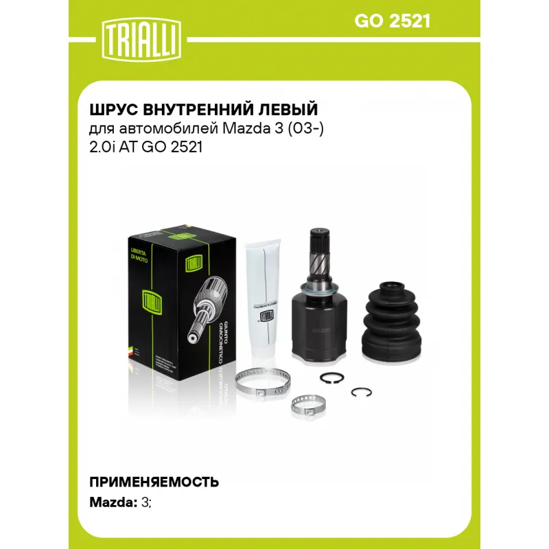 ШРУС внутренний левый для автомобилей Mazda 3 (03-) 2.0i AT GO 2521 TRIALLI
