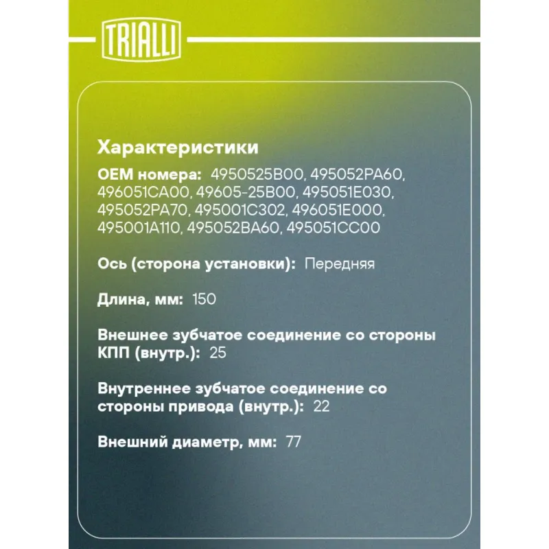 ШРУС внутренний передний для автомобилей Hyundai Getz (02-) 1.3i/1.4i AT GO 0836 TRIALLI