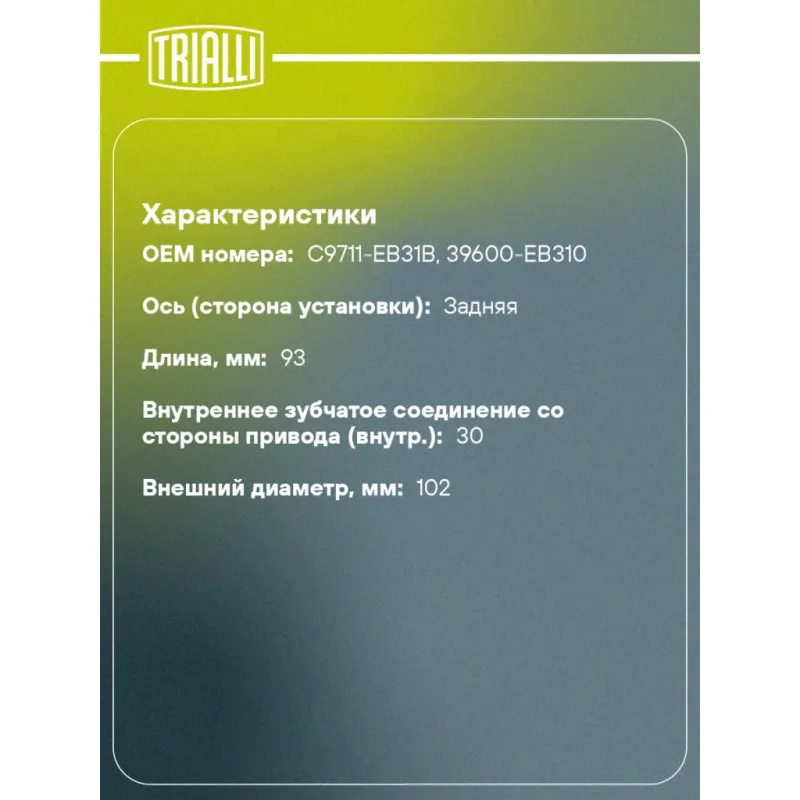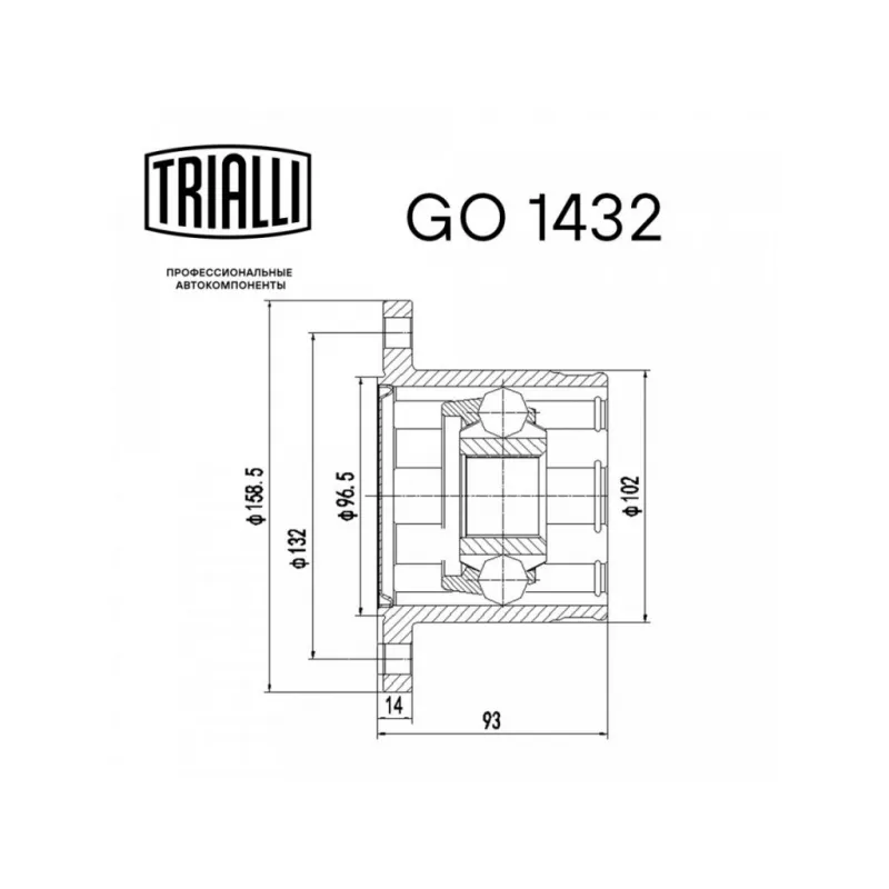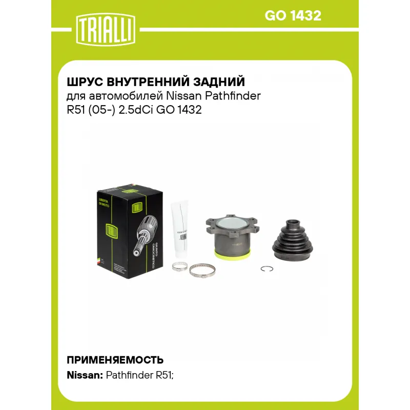 ШРУС внутренний задний для автомобилей Nissan Pathfinder R51 (05-) / Ниссан Патфайндер R51 2.5dCi TRIALLI GO 1432