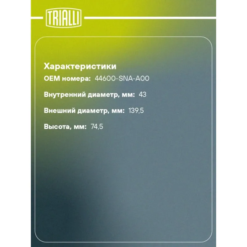 Ступица передняя для автомобиля Honda Civic VIII (06-) седан/хетч. Характеристики: Артикул: MR 2302 OEM номера: 44600-SNA-A00 Товарная линейка: BLACK Количество на автомобиль: 2 Подходящая гайка колесная AIRLINE:: ASCR016, ASCR019, ASCR021 Подходящая шпилька колесная AIRLINE:: ASTD004, ASTD007 Сторона установки: Спереди, слева/справа Высота, мм: 74,5 Внутренний диаметр, мм: 43 Внешний диаметр, мм: 139,5 Особенности конструкции:: Без подшипника Количество зубьев: 26 Гарантийный срок: 2 года/60 000 км Крепление колёсного диска: M12x1,5 Разболтовка (PCD):: 5x114,3 Разболтовка (PCD): 5-M12x1.5-114.3 Подходит для авто: Honda Civic VIII (06-) Для проверки применяемости отправьте VIN автомобиля через вкладку "Есть вопросы о товаре?" Комплектация: Ступица - 1 шт Гарантия: от 1 года.