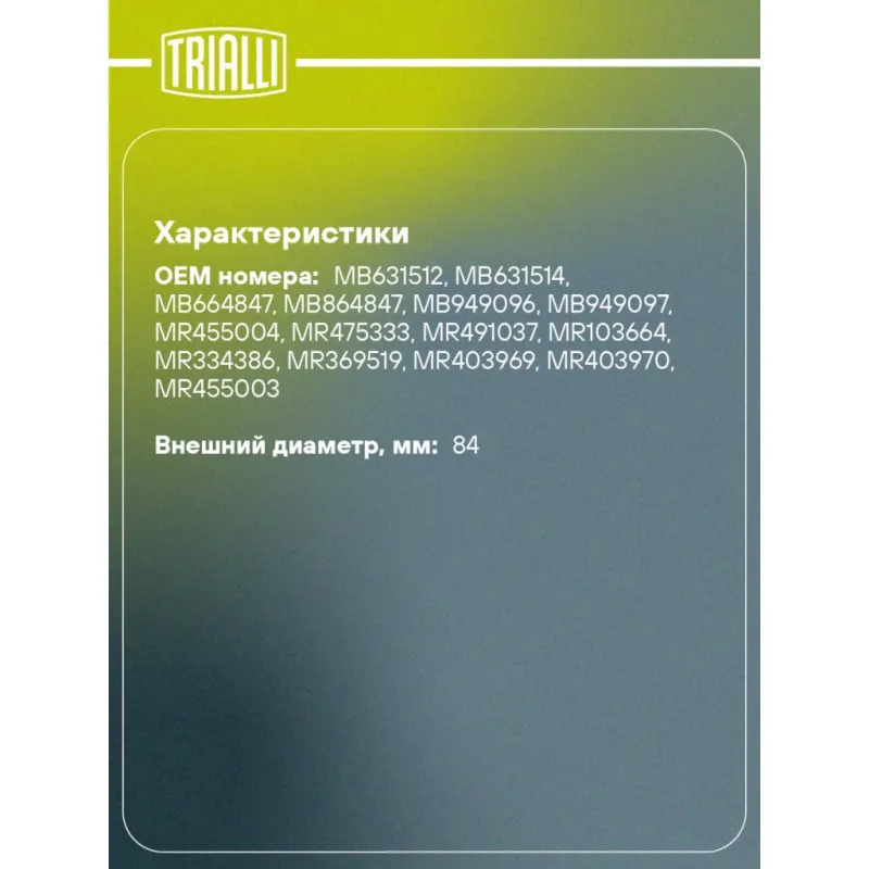 | Внешний диаметр, мм | 84 |