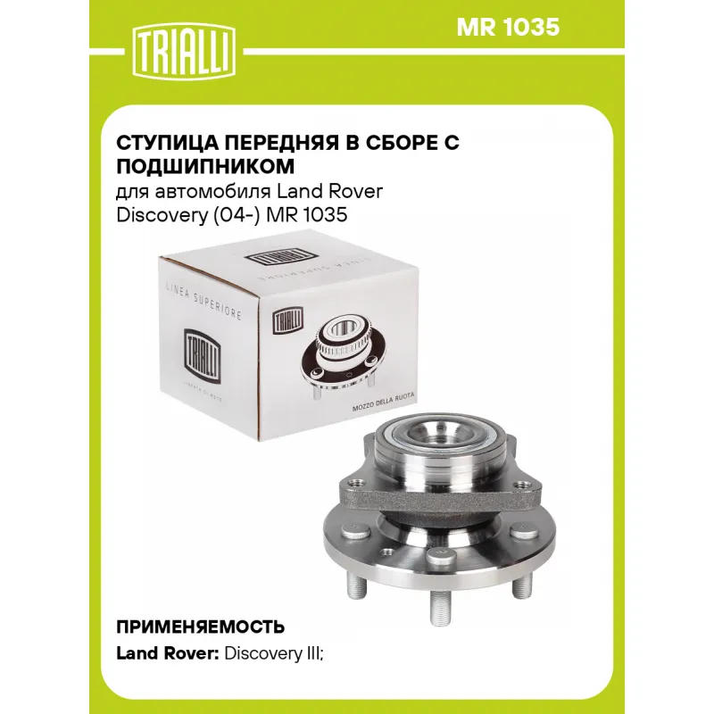Ступица передняя в сборе с подшипником для автомобиля Land Rover Discovery (04-) Характеристики: Артикул: MR 1035 OEM номера: LR 014147, LR048083, LR076692, RFM 500010 Товарная линейка: BLACK Количество на автомобиль: 2 Подходящая гайка колесная AIRLINE:: ASCR014 Сторона установки: Спереди, слева/справа Высота, мм: 118 Внутренний диаметр, мм: 89 Внешний диаметр, мм: 160,5 Особенности конструкции:: С подшипником Количество зубьев: 29 Количество креп. отверстий: 4 Гарантийный срок: 1 год/30 000 км Крепление колёсного диска: M14x1,5 Разболтовка (PCD):: 5x120 Разболтовка (PCD): 5-M14x1.5-120 Подходит для авто: Land Rover Discovery III (04-), Discovery IV (09-), Range Rover Sport I (05-) Для проверки применяемости отправьте VIN автомобиля через вкладку "Есть вопросы о товаре?" Комплектация: Ступица - 1 шт Гарантия: от 1 года.