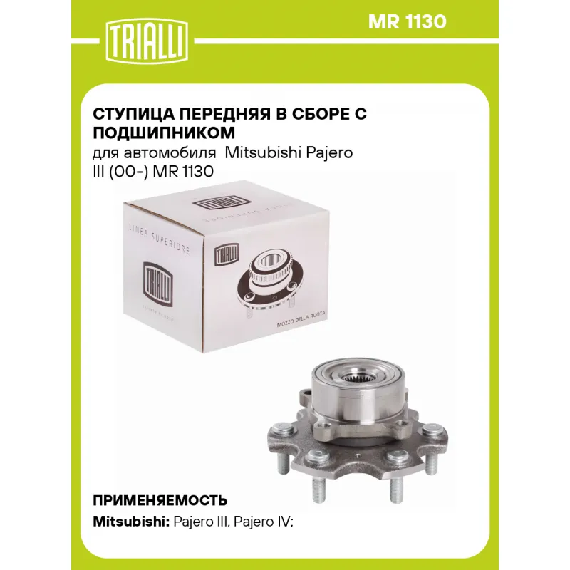 Ступица передняя в сборе с подшипником для автомобиля Mitsubishi Pajero III (00-) Характеристики: Артикул: MR 1130 OEM номера: 3880A012, 3880A024, MN103586, MR455620, MR594954, 3880A013, 3885A103, MR961910 Товарная линейка: BLACK Количество на автомобиль: 2 Подходящая гайка колесная AIRLINE:: ASCR001, ASCR005 Сторона установки: Спереди, слева/справа Высота, мм: 86,1 Внутренний диаметр, мм: 30 Внешний диаметр, мм: 136 Особенности конструкции:: С подшипником Количество зубьев: 30 Количество креп. отверстий: 4 Гарантийный срок: 1 год/30 000 км Крепление колёсного диска: M12x1,5 Разболтовка (PCD):: 6x139,7 Разболтовка (PCD): 6-M12x1.5-139,7 Подходит для авто: Mitsubishi Pajero III (00-), Pajero IV (06-), Pajero III (00-), Pajero IV (06-) Для проверки применяемости отправьте VIN автомобиля через вкладку "Есть вопросы о товаре?" Комплектация: Ступица - 1 шт Гарантия: от 1 года.
